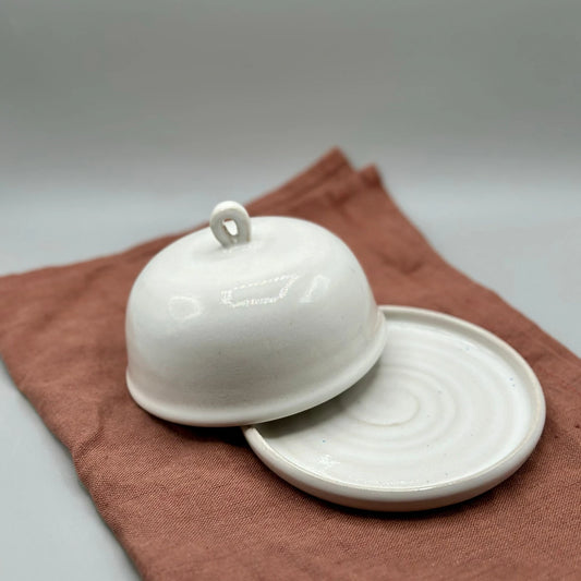 Pottery Round Butter Dish with Lid
